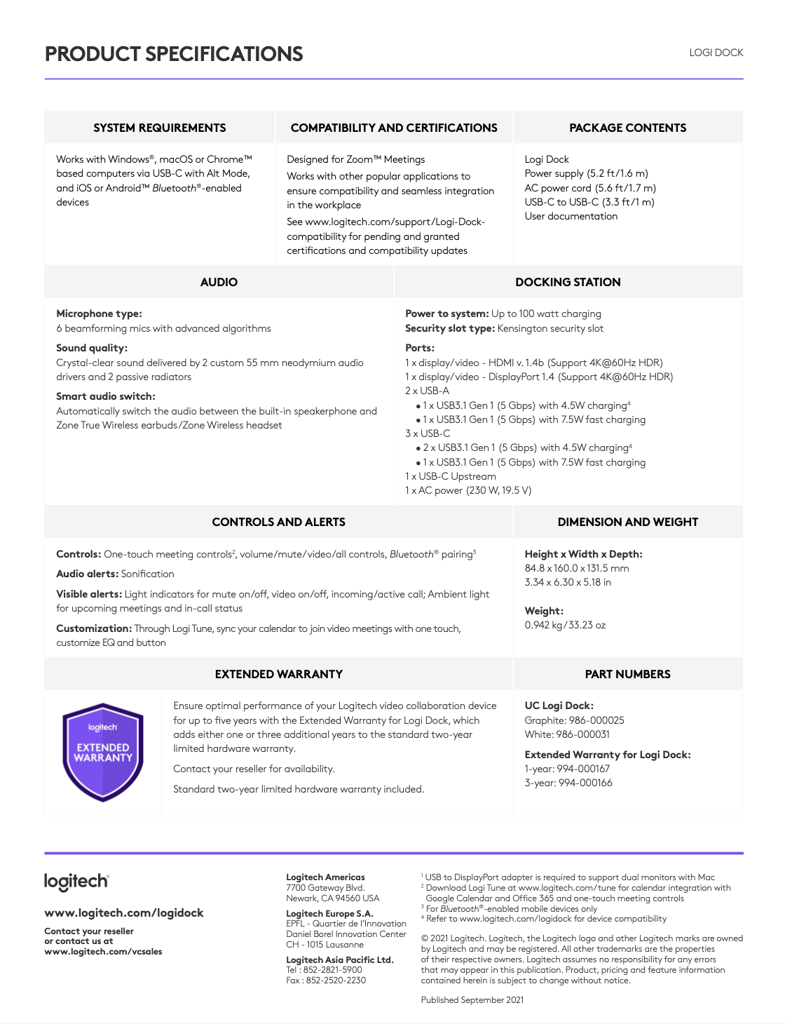Logitech — Core Product Datasheets & Technical Product Messaging