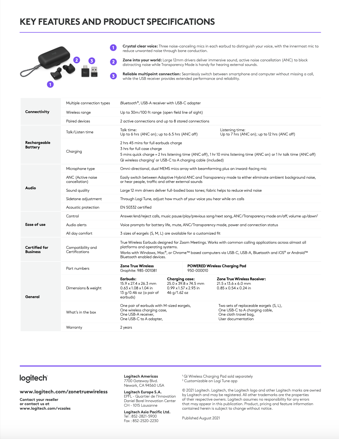 Zone True Wireless Datasheet (Zoom)