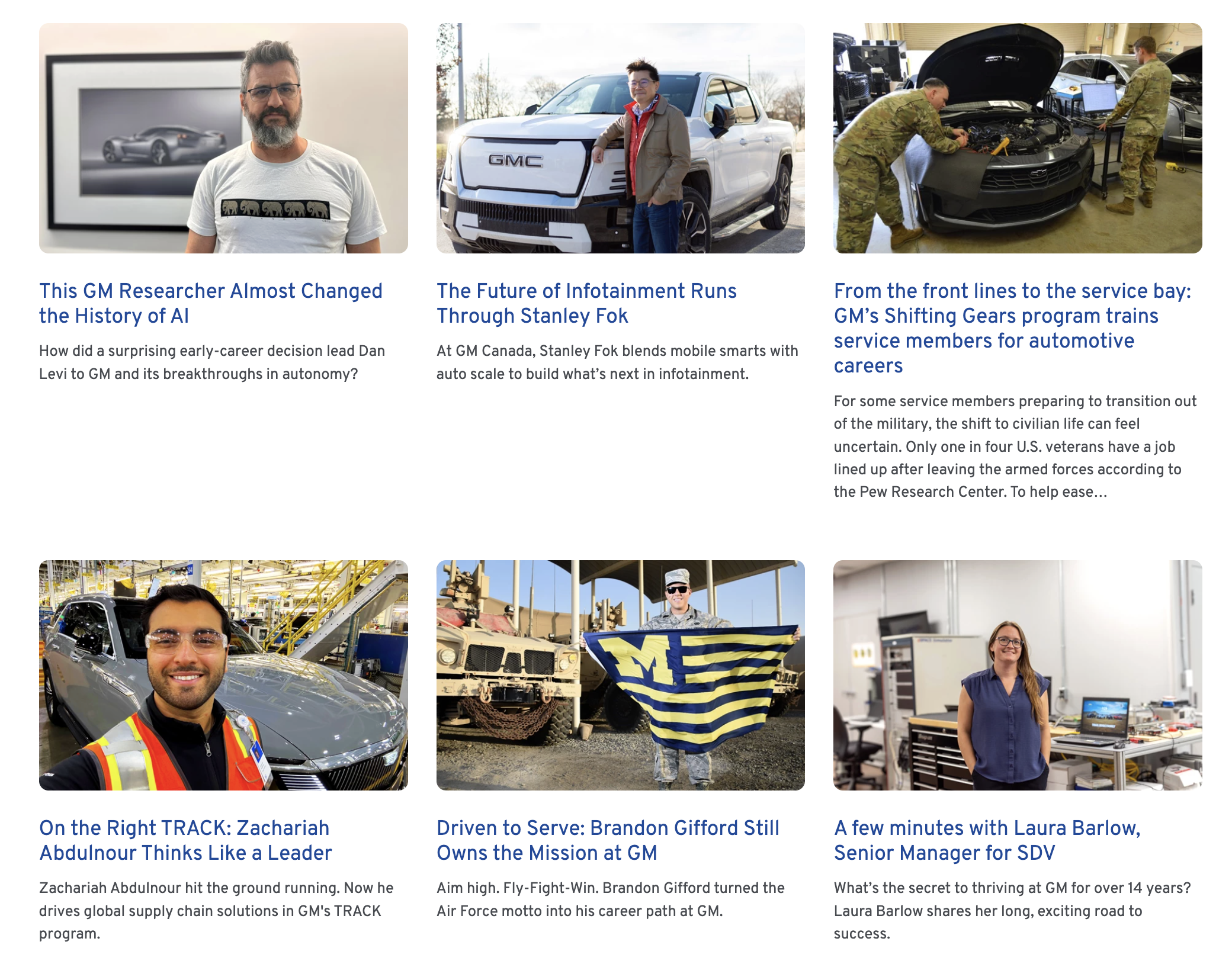 My public-facing portfolio of work includes employee profiles, career stories, technical and innovation content, and broader “life at GM” narratives.