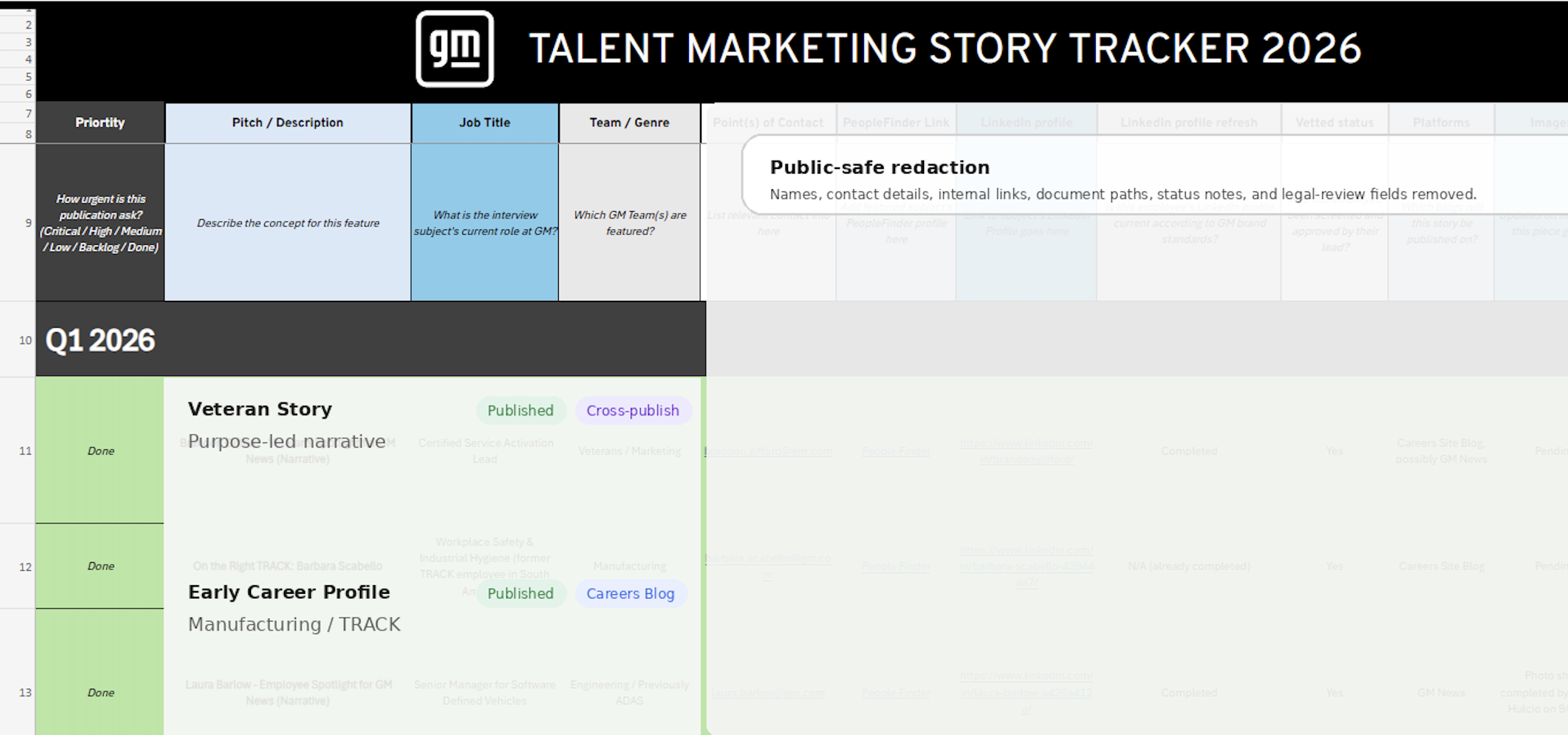 This work helped make employee storytelling more visible, more repeatable, and more strategically connected across GM’s talent, editorial, and communications ecosystem.